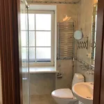 Some bathrooms have a separate toilet and a shower, along with a hair dryer and bath sheets.